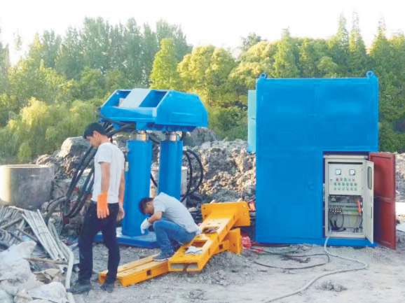 在地鐵建設(shè)中,三軸攪拌機施工前,必須先進行場地平整、清理,對地下障礙物進行調(diào)查,以便在開挖過程中妥善處理障礙物。由三軸攪拌機將型鋼插入地下,待結(jié)構(gòu)穩(wěn)定后,由型鋼拔樁機將其拔出回收再利用,節(jié)省成本。 型鋼的常規(guī)規(guī)格主要有300mm*500mm、300mm*700mm等。山嶺機械根據(jù)型鋼的規(guī)格研發(fā)生產(chǎn)了適用于其規(guī)格的H型鋼拔樁機,利用液壓油缸的動力將工字鋼(H型鋼)拔出地層。 電機功率 | 主泵壓力 | 油頂提拔力 | 45kw | 30mpa | 320噸 |